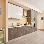 Geniet van een ingerichte kitchenette in Tra La Rocca E Il Lago appartementen met een koffie/theezetapparaat, een koelkast en een oven voor uw gemak.